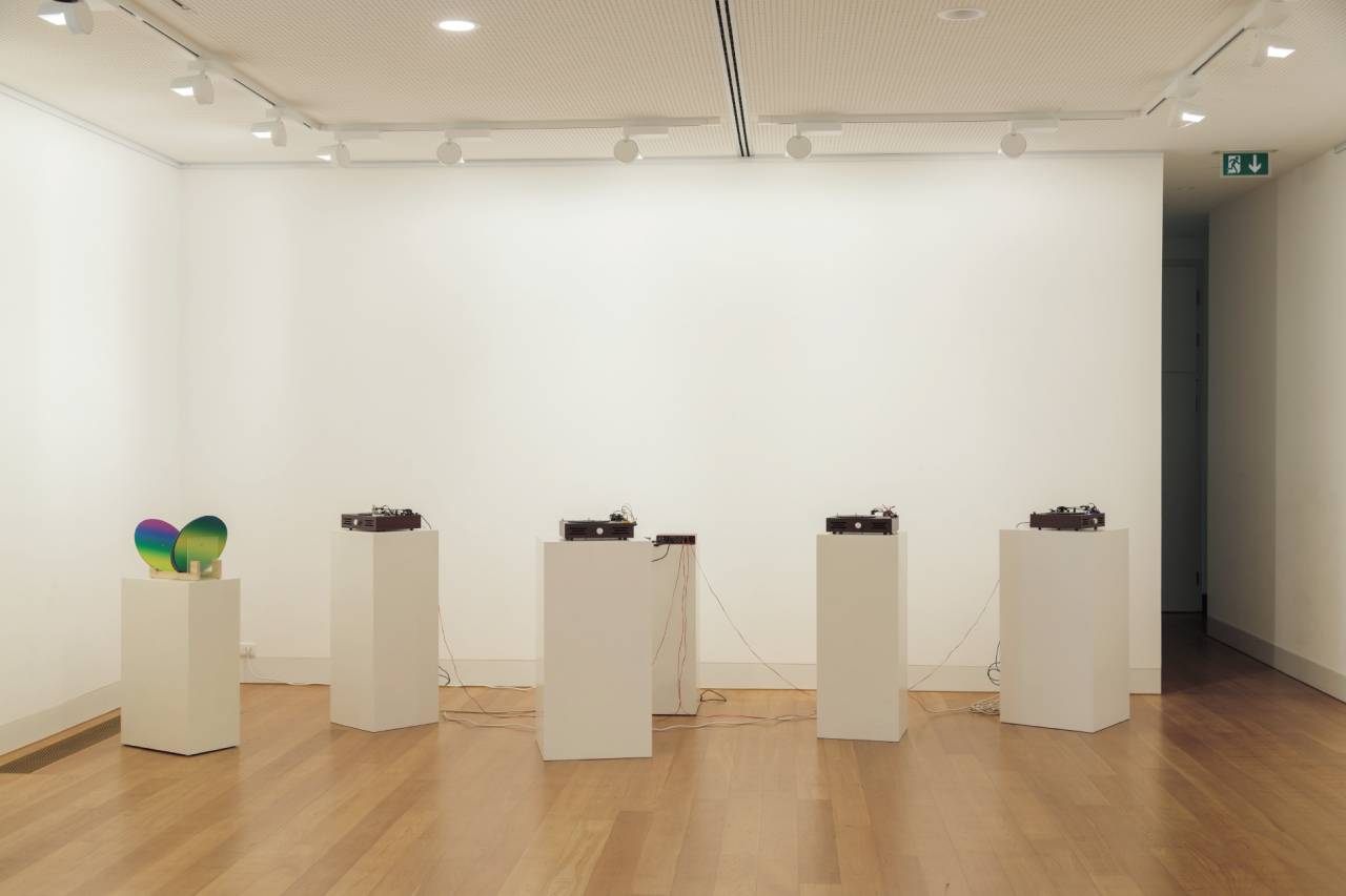 Colour plates rotate on four turntables, which are read by color sensors instead of record needles and converted into sounds. The records can be exchanged and the volume altered, interactively setting up different audio visual ensembles that precisely blur the boundaries of hearing and seeing and translate them into one another.